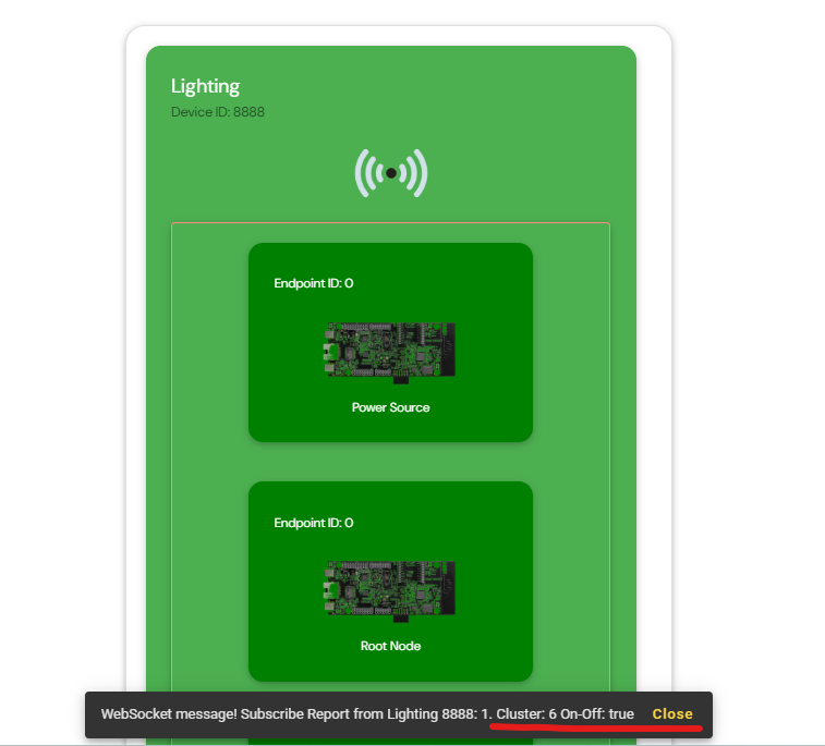 Subscription of Matter device OnOff cluster in chip-tool-web2