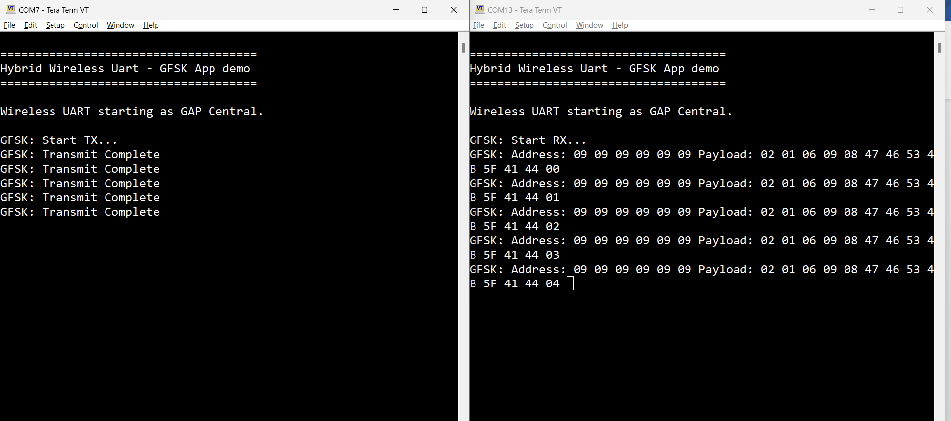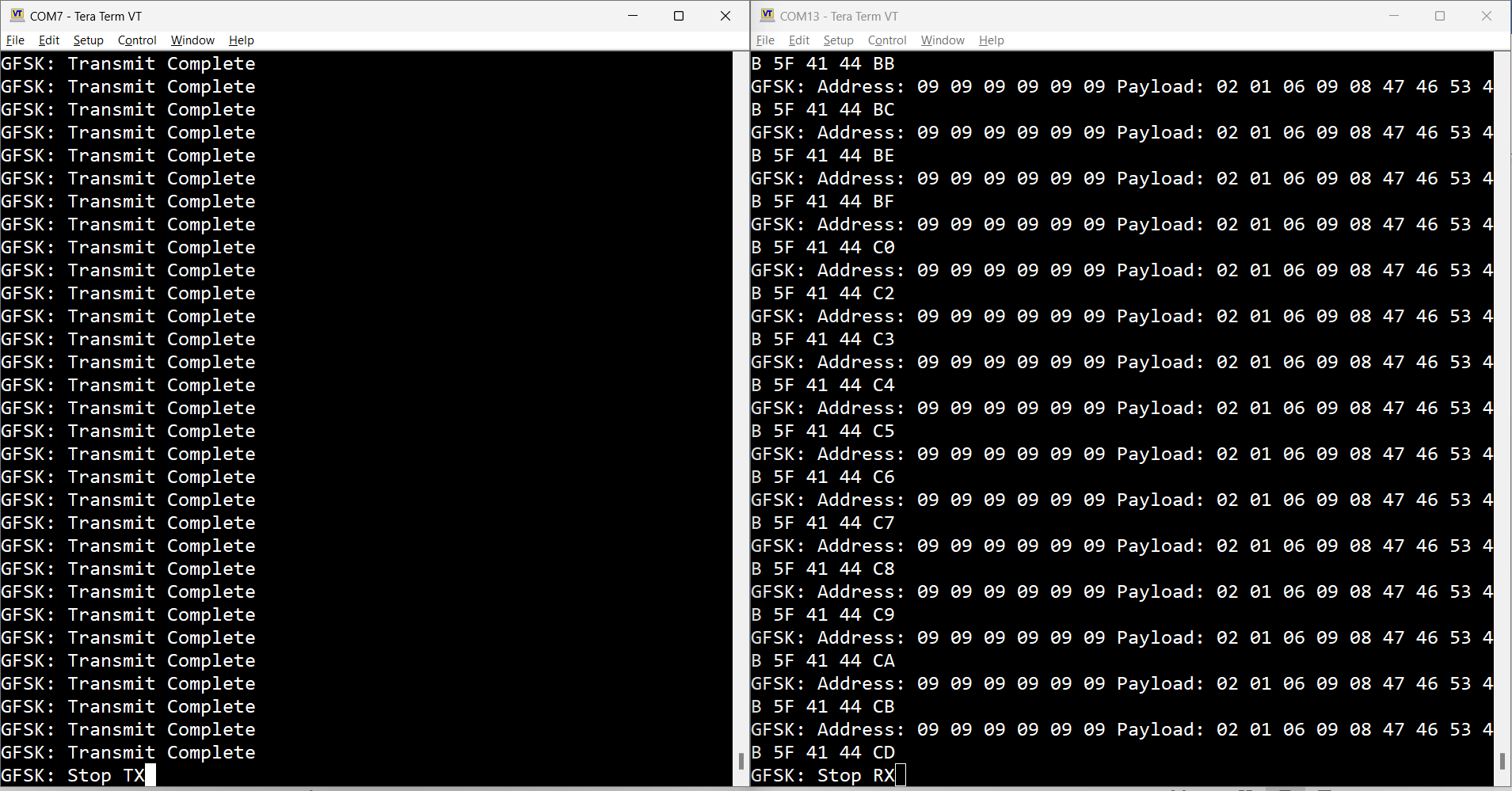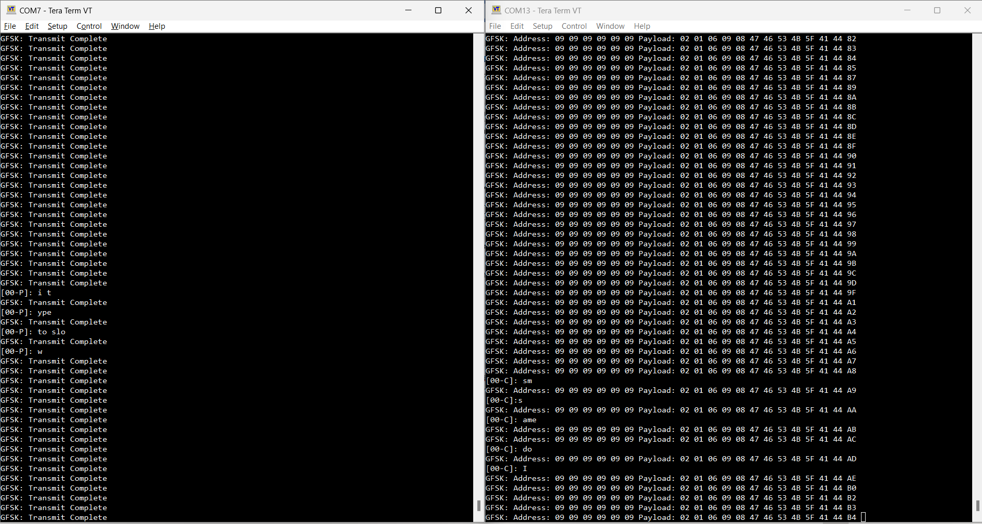 Teraterm – Mixed Wireless UART (Bluetooth LE) and Generic FSK activity