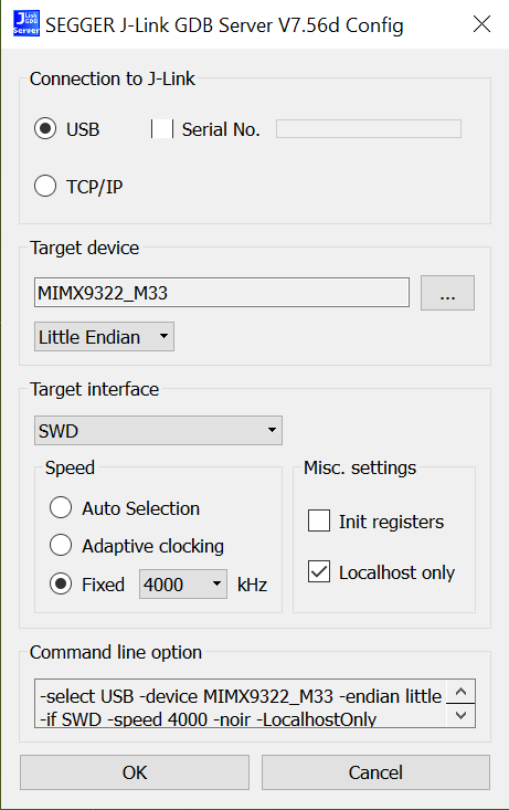 $ JLinkGDBServer -jlinkscriptfile /opt/SEGGER/JLink/Devices/NXP/iMX93/NXP_iMX93_Connect_CortexM33.JLinkScript -device MIMX9352_M33 -if SWD