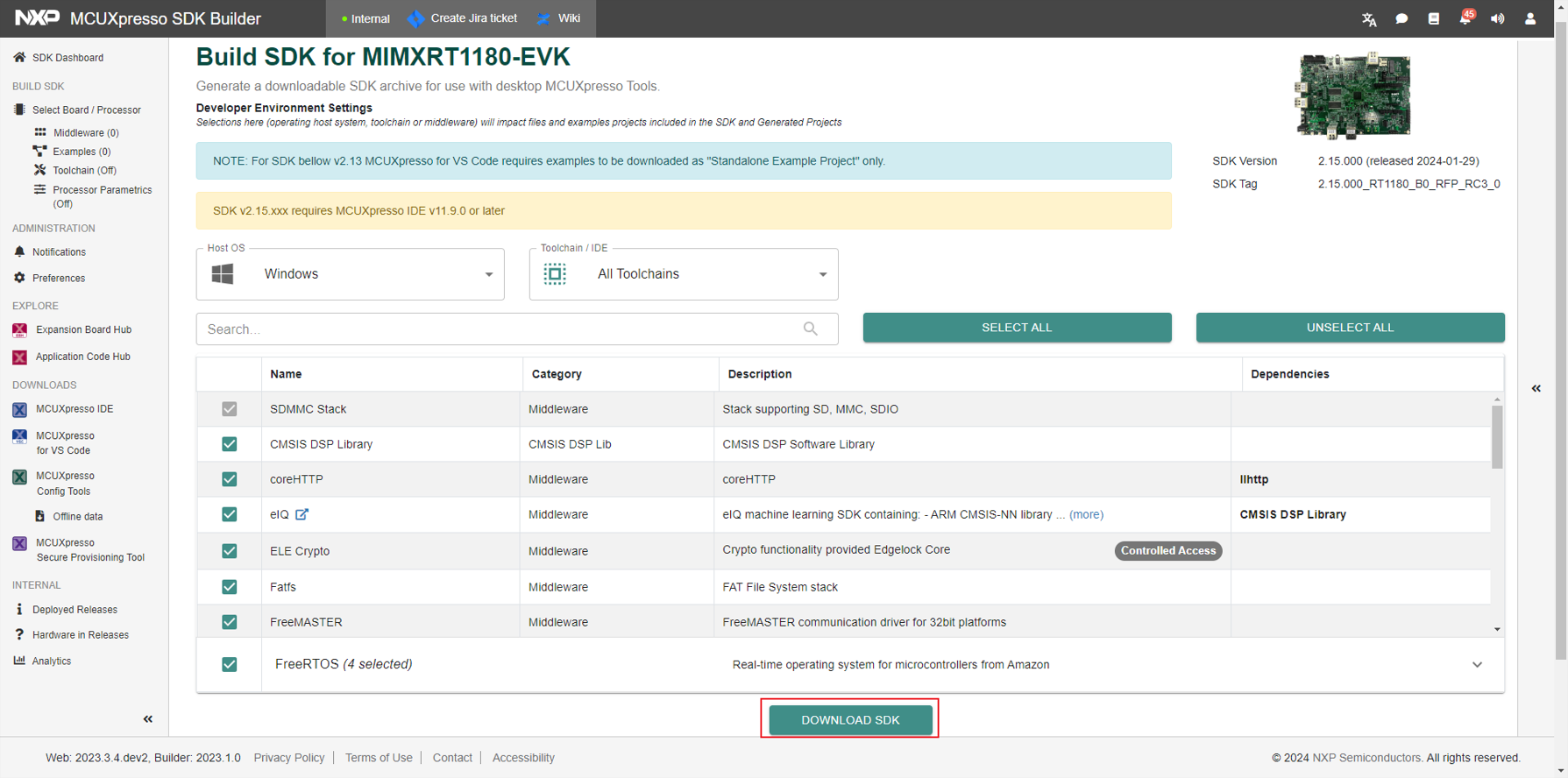 To configure and download the MCUXpresso SDK for the FoE example building: