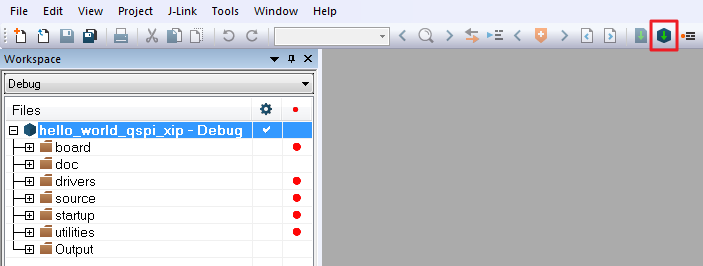 Select the desired build target from the drop-down. For this example, select the “hello_world_qspi_xip – Debug” target.