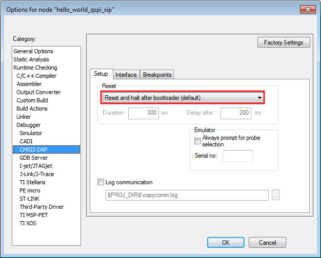 Run a non-XIP (plain load) example application using CMSIS DAP