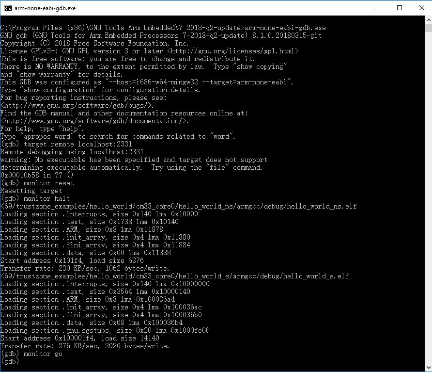 5. load <install\_dir\>/boards/lpcxpresso55s36/trustzone\_examples/hello\_world/cm33\_core0/hello\_world\_ns/armgcc/debug/hello\_world\_ns.elf