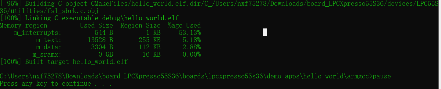 <install_dir>/examples/lpcxpresso55s36/demo_apps/hello_world/armgcc