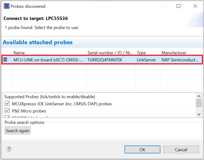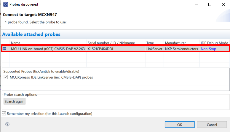 For more information on debug probe support in the MCUXpresso IDE, see community.nxp.com.