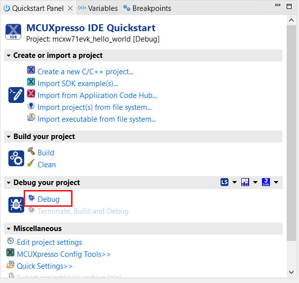 Parent topic:Run a demo using MCUXpresso IDE