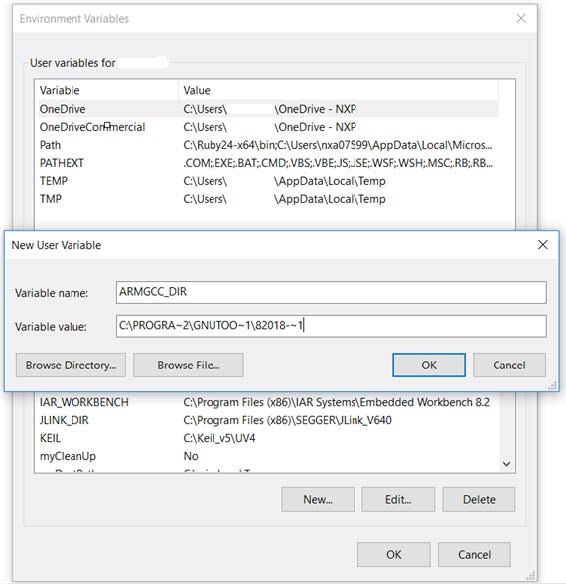 Create a new systemenvironment variable and name it as ARMGCC_DIR. The value of this variable should point to the Arm GCC Embedded tool chain installation path. For this example, the path is: