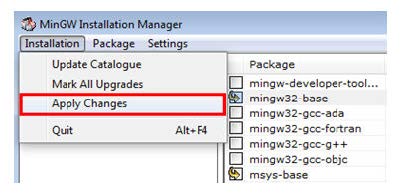 Ensure that the mingw32-base and msys-base are selected under Basic Setup.