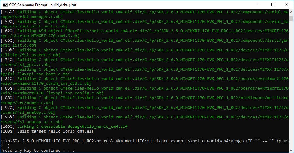 <install_dir>/boards/evkbmimxrt1170/multicore_examples/hello_world/cm4/armgcc/build_debug.bat