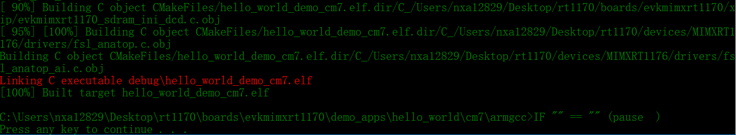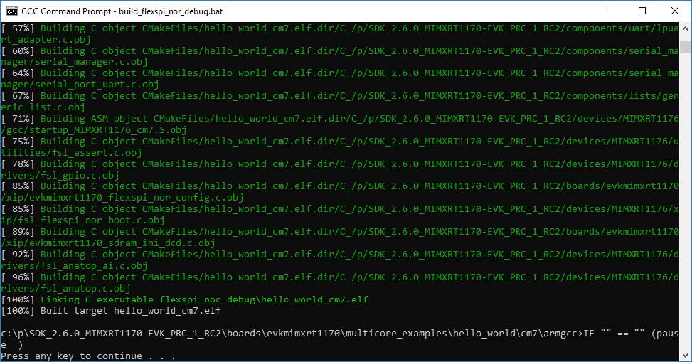 <install_dir>/boards/evkbmimxrt1170/multicore_examples/hello_world/cm7/armgcc/ build_flexspi_nor_debug.bat