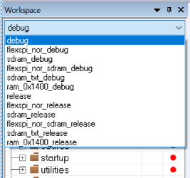 • flexspi_nor_release– Project configuration is same as the release target. The linker file is flexspi_nor linker, where text is put in flash and data put in TCM.