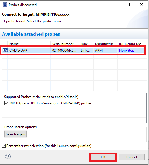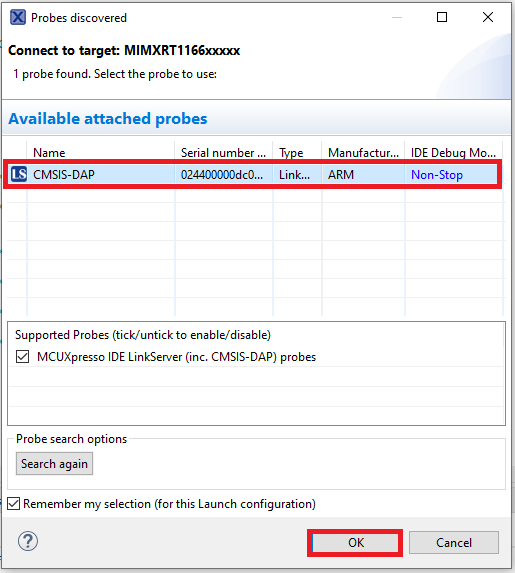 Note: On MCUXpresso IDE, the feature to simultaneously debug two cores is only supported by CMSIS-DAP debugger.