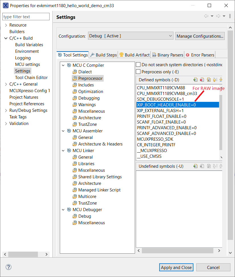 XIP_BOOT_HEADER_ENABLEin the compiler setting.For MDK, change the macro