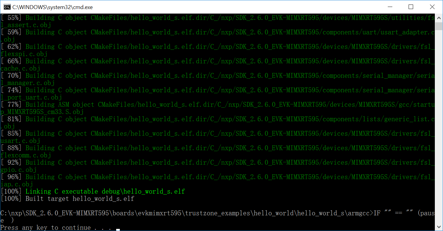 <install_dir>/boards/evkmimxrt595/trustzone_examples/hello_world/hello_world_s/armgcc/build_debug.bat