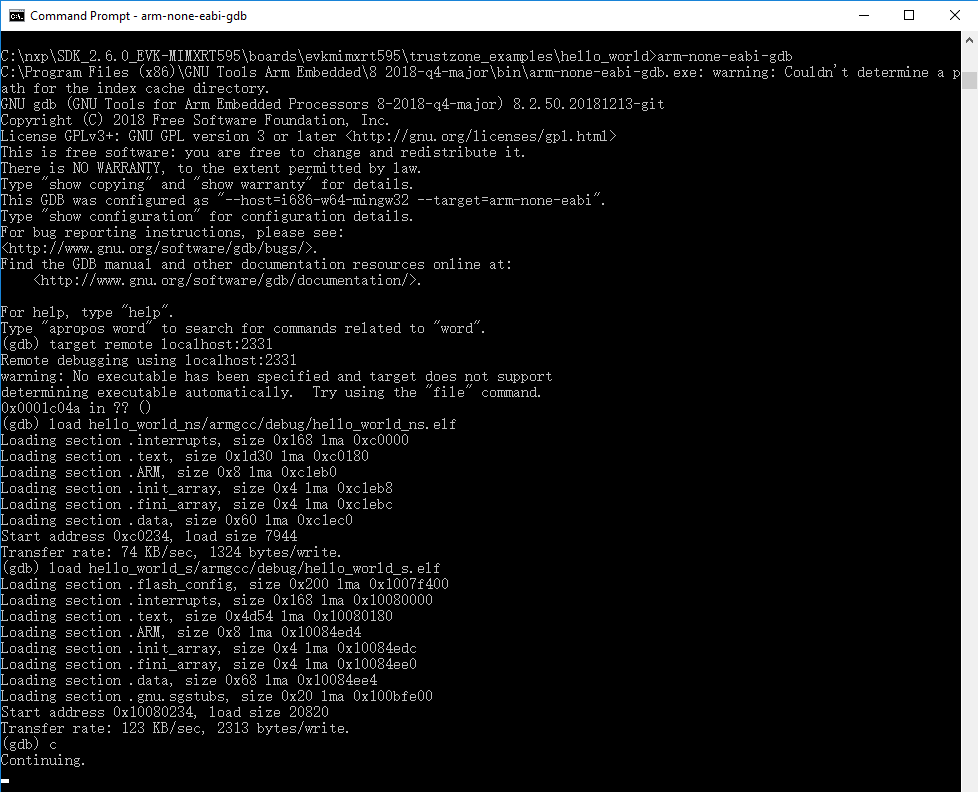 <install\_dir\>/boards/evkmimxrt595/trustzone\_examples/hello\_world/hello\_world\_s/armgcc/debug/hello\_world\_s.elfmonitor reset