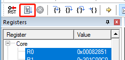 1. To debug the application, click load (or press the F8 key). Then, click the Start/Stop Debug Session button, highlighted in red in Figure 2. If using J-Link as the debugger, click Project option >Debug >Settings >Debug >Port, and select SW.