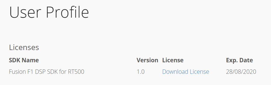 1. Go to the URL https://tensilicatools.com/download/fusion-f1-dsp-sdk-for-rt500/ and log in.
