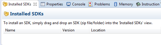 Drag and drop the SDK zip file into the Installed SDKs view to install an SDK. In the window that appears, click OK and wait until the import has finished.