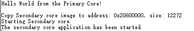 Hello_Worldmulticore demos are now running. A banner appears on the terminal and the LED blinks. If this is not true, check your terminal settings and connections.