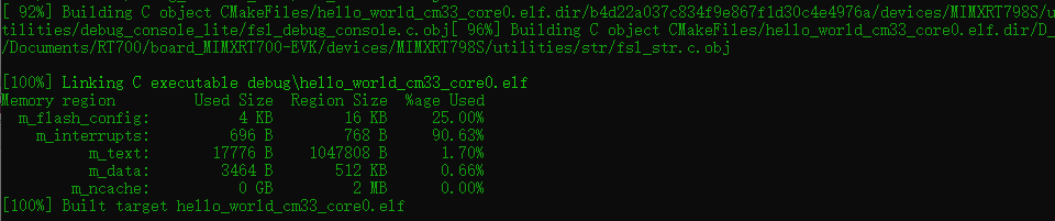 <install_dir>/boards/ mimxrt700evk /multicore_examples/hello_world/cm33_core0/armgcc/build_debug.bat <install_dir>/boards/ mimxrt700evk /multicore_examples/hello_world/cm33/armgcc_core1/build_flash_debug.bat