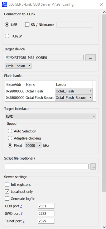 Modify the settings as shown in Figure 1. The target device selection chosen for this example is MIMXRT798S_M33_CORE0.
