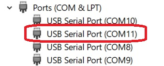 1. In the Device Manager, expand the Ports (COM & LPT) section to view the available ports. The COM port names are different for all the NXP boards.
