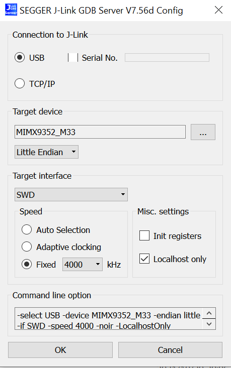 $ JLinkGDBServer -jlinkscriptfile /opt/SEGGER/JLink/Devices/NXP/iMX93/NXP_iMX93_Connect_CortexM33.JLinkScript -device MIMX9352_M33 -if SWD