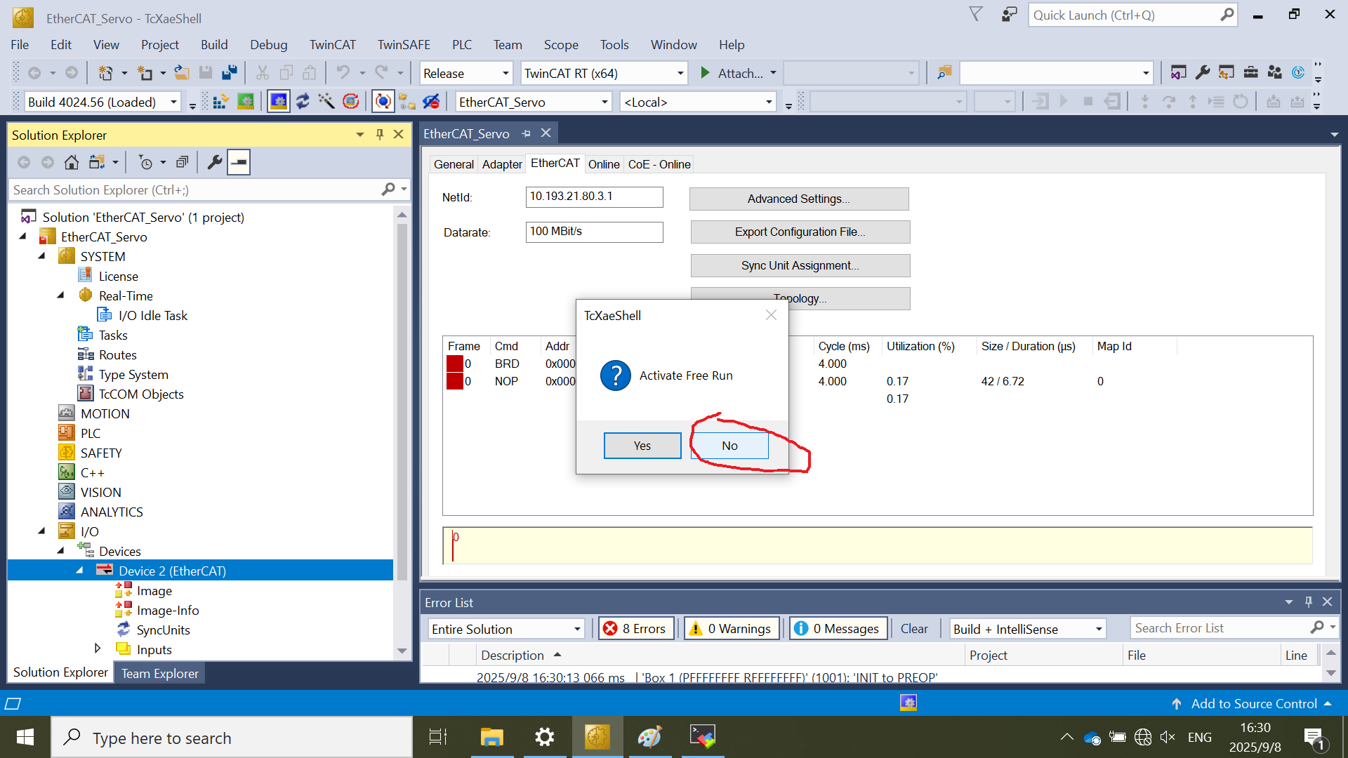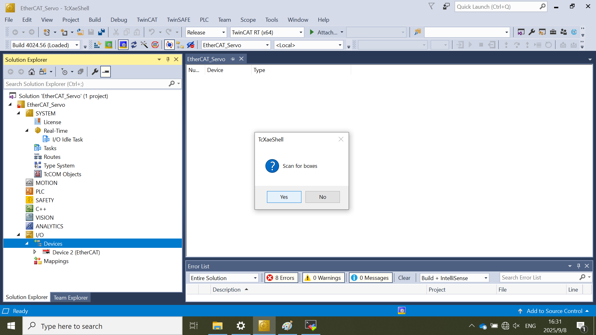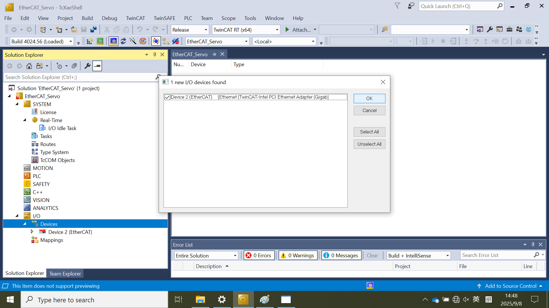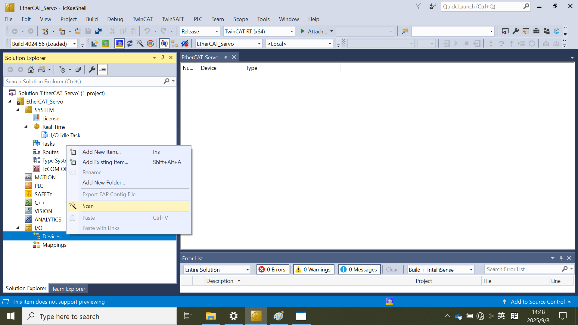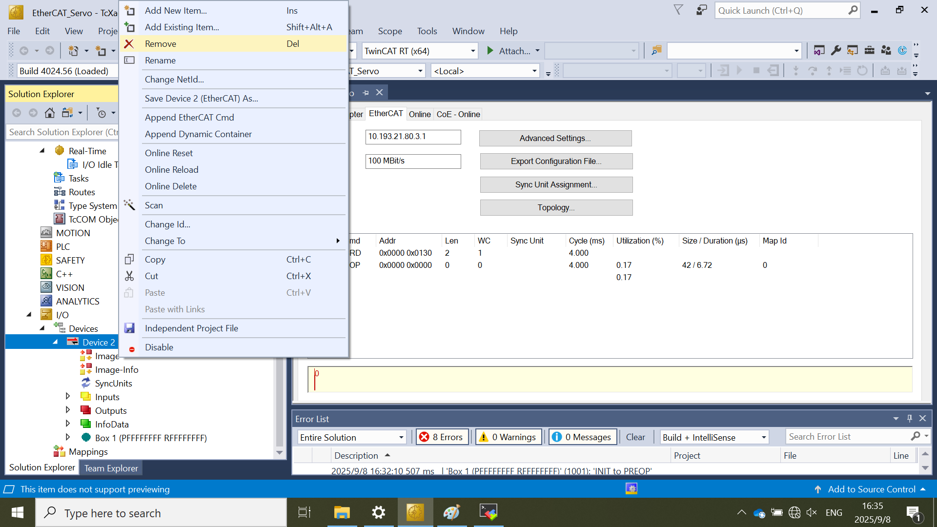 Right-click on Device X (EtherCAT) node and remove the Device X (EtherCAT) node.