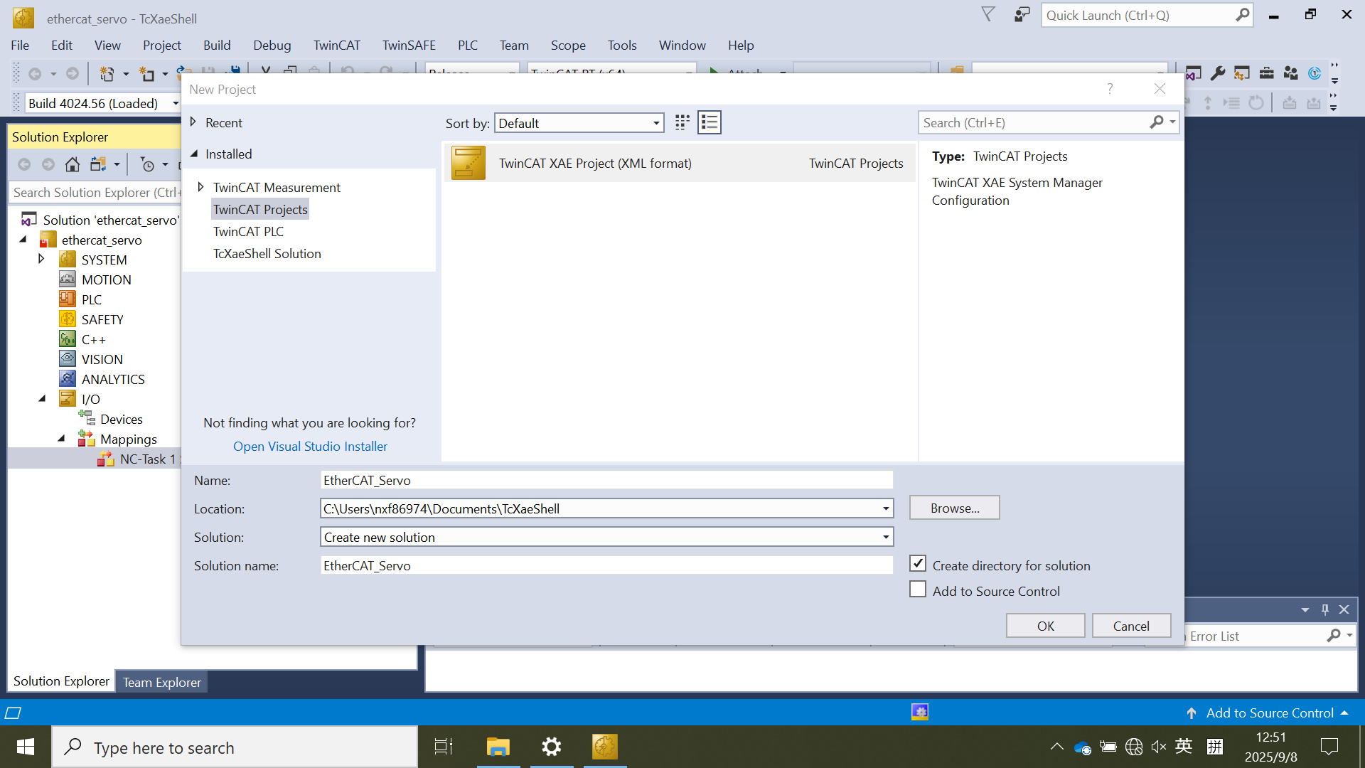 Select TwinCAT Projects and name this project EtherCAT_Servo.