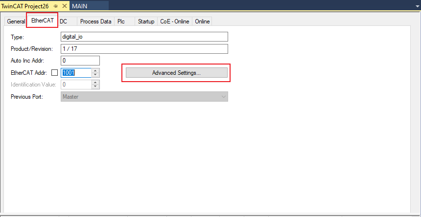 From the available EEPROM list, select NXP > ECAT > digital_io.