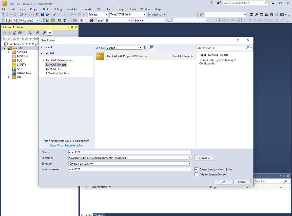 Select TwinCAT Projects.