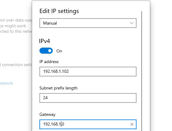 ip address: 192.168.1.102subnet mask: 255.255.255.0gateway: 192.168.1.0