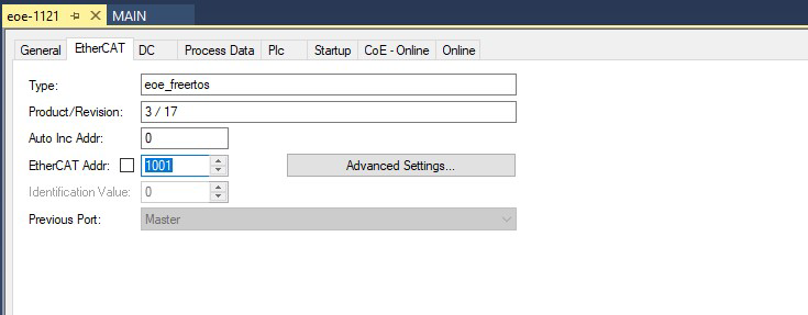 Copy the ESI file named ‘ECAT-EOE.xml’ generated by SSC tool from the SSC project folder to the <TwinCAT_installation_folder>/<Version>/Config/io/EtherCAT/ folder.