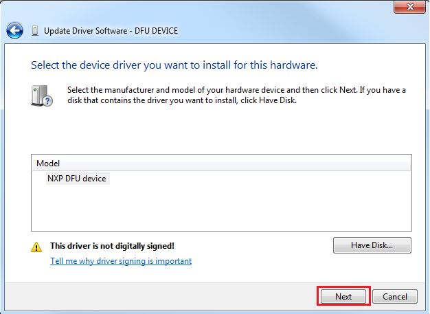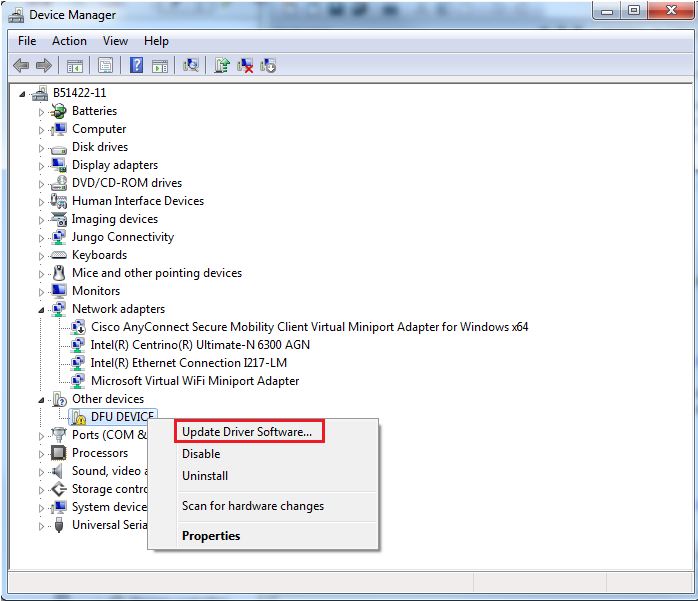 Below are the steps to install the dfu driver on Windows 7 OS. Similar process applies to Windows XP OS.