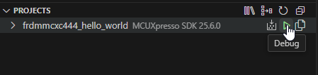 2. Navigate to the PROJECTS view and click the play button to initiate a debug session.
