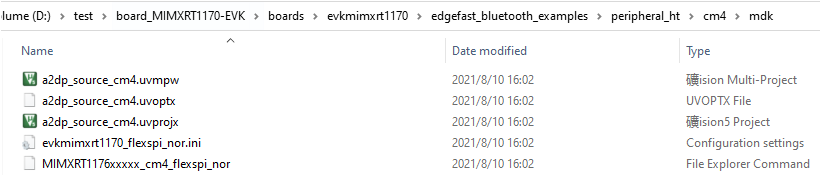 Open folder mdk from <install_dir>boards\evkmimxrt1170\edgefast_bluetooth_examples\peripheral_ht\cm4\mdk.