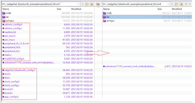Copy files with the .c and .h filename extension in folder cm7 with directory <install_dir> boards\evkmimxrt1170\edgefast_bluetooth_examples\peripheral_ht\cm7to folder cm4 with directory <install_dir> boards\evkmimxrt1170\edgefast_bluetooth_examples\peripheral_ht\cm4.