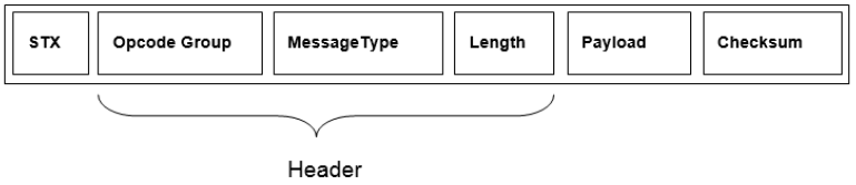 The FSCI module sends and receives messages as shown in the figure below. This structure is not specific to a serial interface and is designed to offer the best communication reliability. The Black Box device expects messages in little-endian format. It also responds with messages in little-endian format.