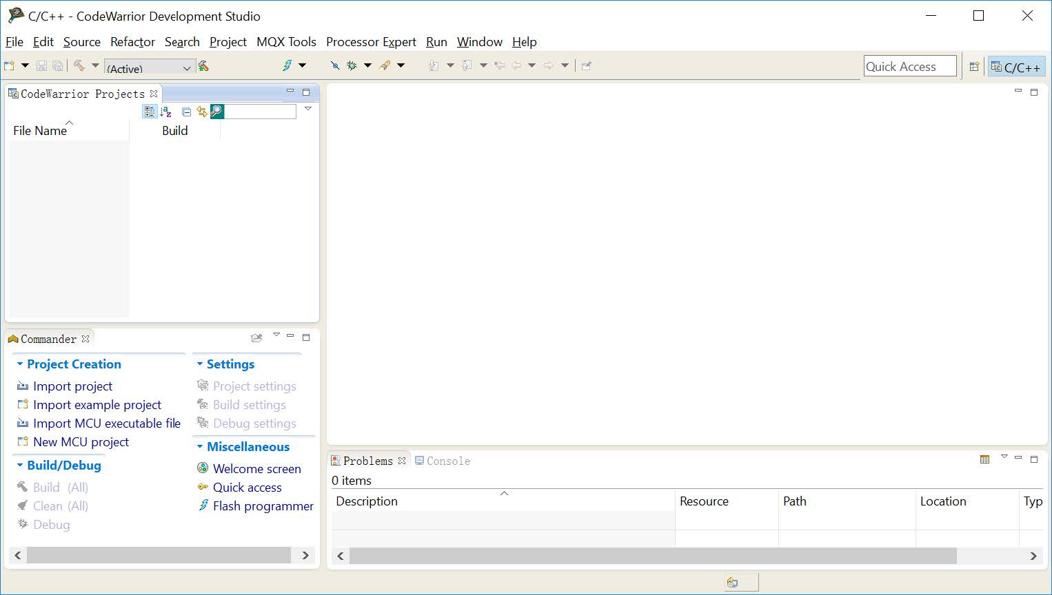 Then the CodeWarrior Development Studio workspace with empty projects appears.