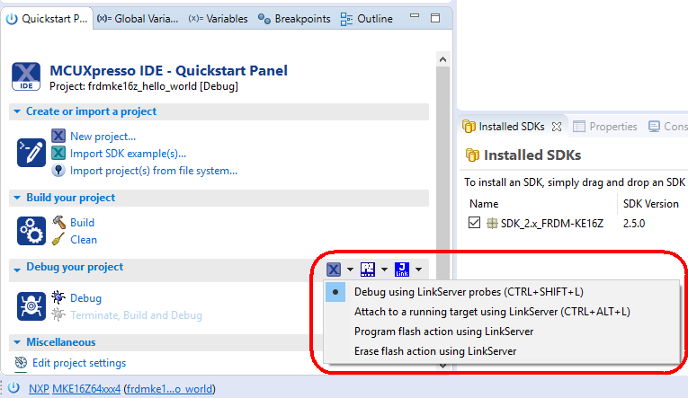 frdmke16z_demo_apps_hello_world [Debug]to launch the debug session.