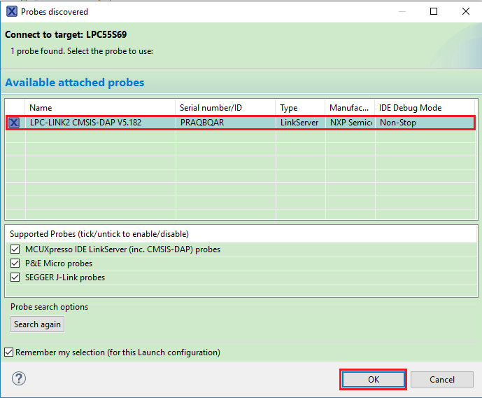 For more information on debug probe support in the MCUXpresso IDE, see community.nxp.com.