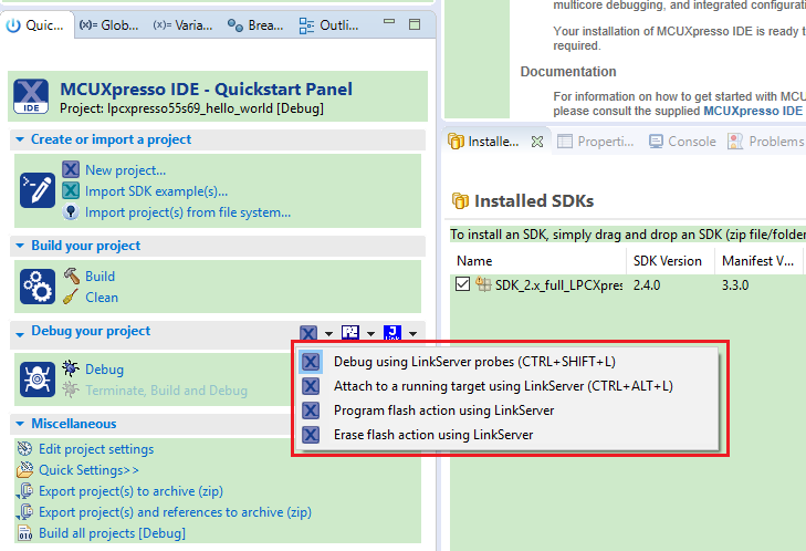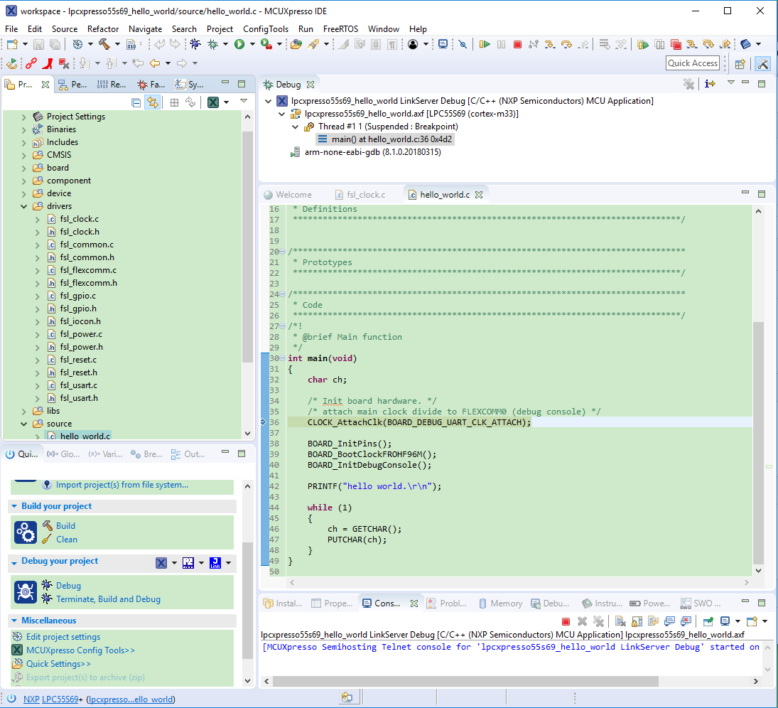 lpcxpresso55s69_hello_world [Debug]to launch the debug session.|