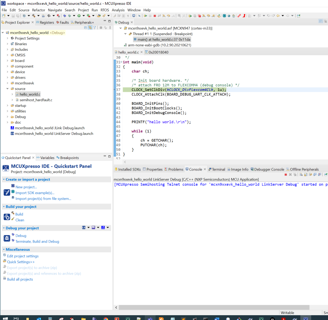 hello_worldworkspace is located in:<install_dir>/boards/mcxn9xxevk/demo_apps/hello_world/iar/hello_world.eww