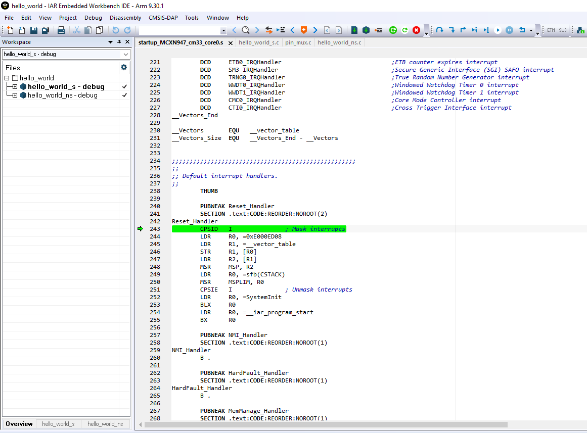 <install_dir>/boards/mcxn9xxevk/trustzone_examples/hello_world/cm33_core0/hello_world_s/iar/hello_world.eww