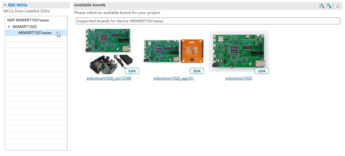 1. In the window that appears, expand the MIMXRT1024folder and select MIMXRT1024xxxxx. Then, select evkmimxrt1024 and click Next, as shown in Figure 3.