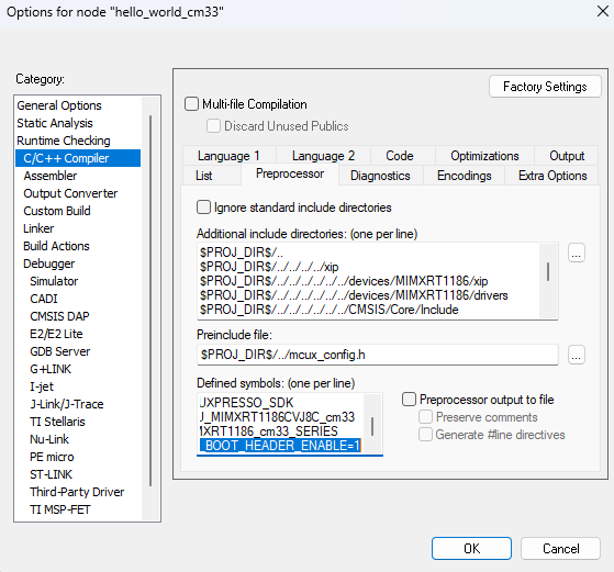 XIP_BOOT_HEADER_ENABLEin the compiler setting.For MDK, change the macro