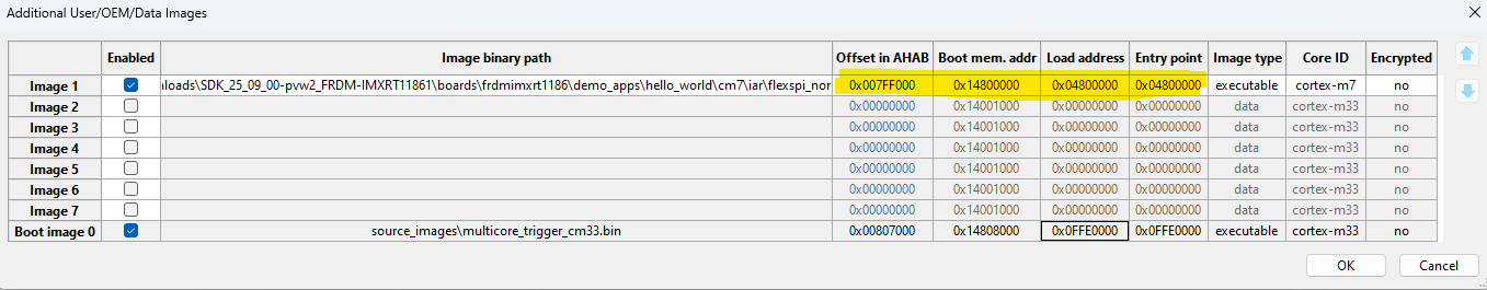 Additional imagesto specify CM7 application image running from ITCM memory. See Table 1 for how to fill in necessary information for this additional image.Parameter