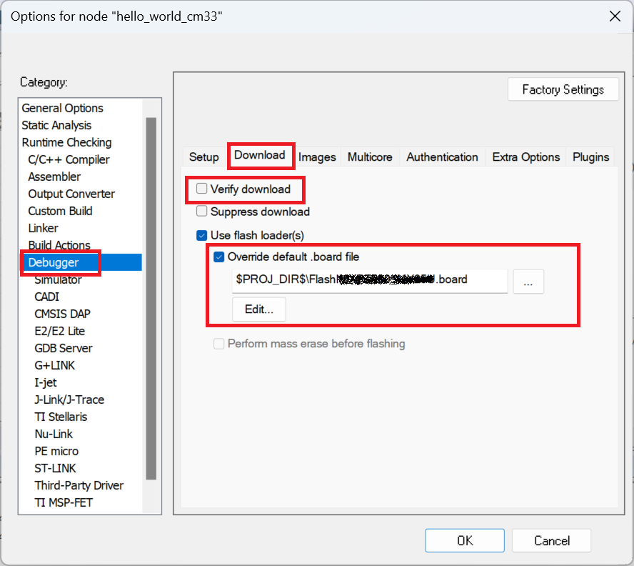 Select Debugger > Download in the Options for node <project_name> dialog box.