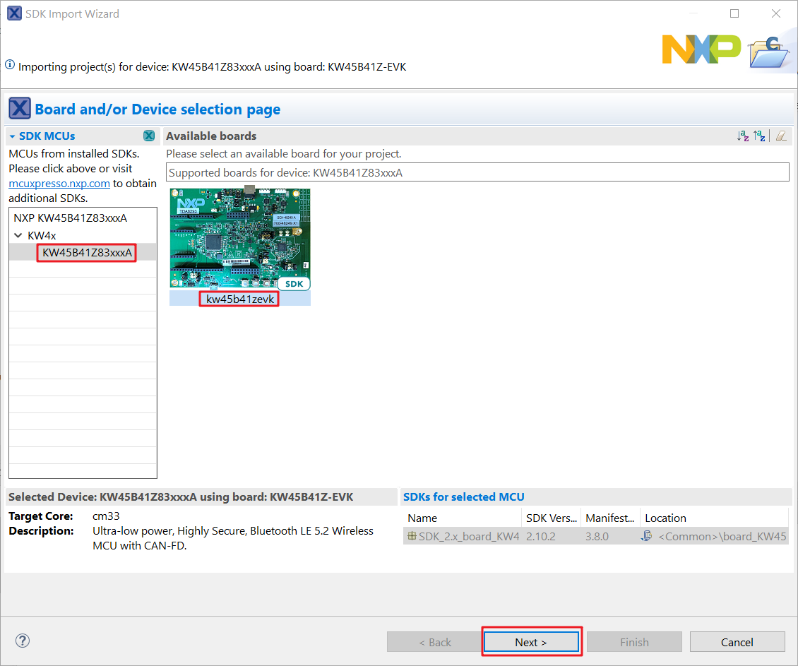 3. In the window that appears, expand the KW4x folder and select KW45B41Z83xxxA. Then, select kw45b41zevk and click Next.