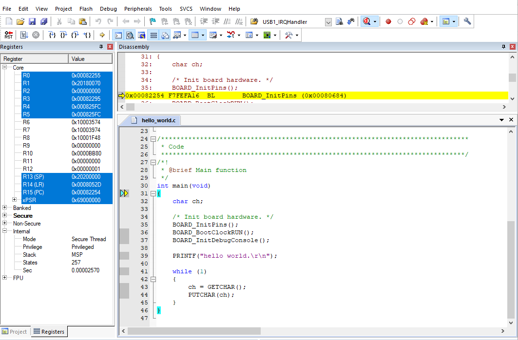 Note: Make sure that the board is set to FlexSPI flash boot mode (U38 all off) before using Keil debug.